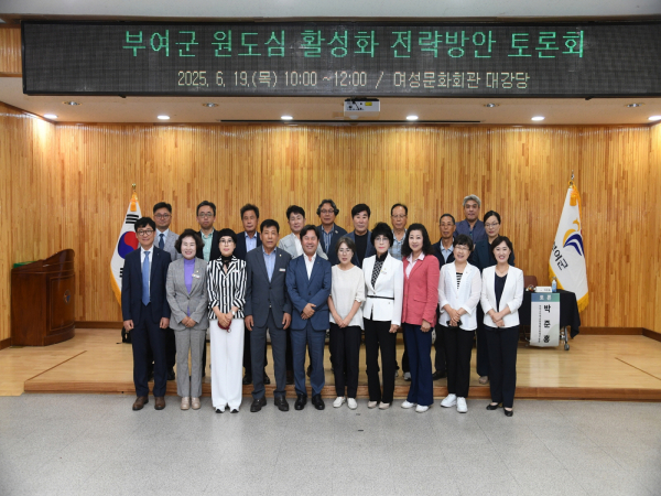 [충청뉴스 부여 = 조홍기 기자] 부여군(군수 박정현)과 충남연구원(원장 전희경)은 19일 부여군 여성문화회관에서 ‘부여군 원도심 활성화 방안 전략방안 토론회’를 개최했다. 군민, 군의원, 전문가가 함께 현실적인 대안을 논의했다.