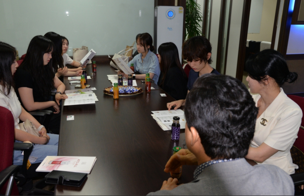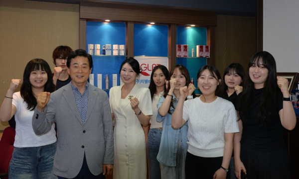 이날 참석한 대전대학교 뷰티디자인학과 4학년 김민주·신수연·이승희·이예진·황주원 학생과 3학년 김지후 학생, 행정학과 4학년 김지영 학생은 ㈜지엘바이오테크의 혁신적인 경영 철학에 깊은 관심을 보였다.