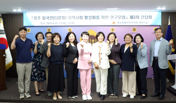 [충청뉴스 최형순 기자] 세종특별자치시의회(의장 임채성)는 25일 의회 청사에서 '정주 외국인(다문화) 지역사회 활성화를 위한 연구모임'(대표의원 홍나영) 제3차 간담회를 열고, 세종시 외국인 주민 현황과 국내외 정책 사례를 심층적으로 논의했다.