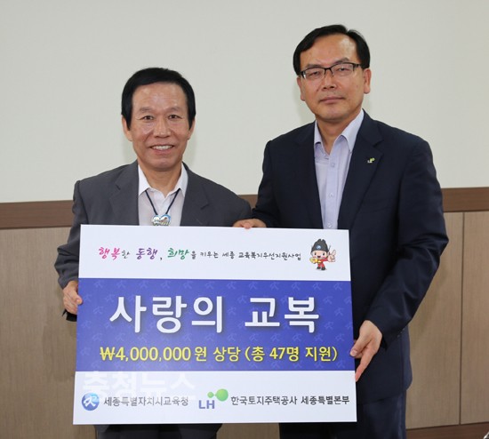 한편, LH공사는 작년 6월에도 세종시교육청 출범 전인 연기교육지원청에 소외계층 학생들에게 하절기 교복 34벌을 전달한 바 있다.