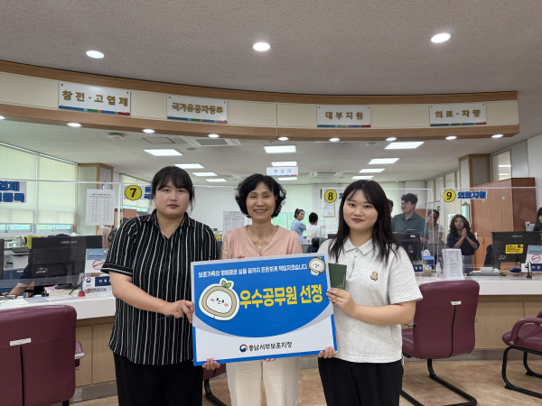 [충청뉴스 유규상 기자] 충남서부보훈지청(지청장 서정미)은 2일 직원들을 격려하고 직무 만족도 향상을 도모하고자 2025년 2분기 우수공무원 곽민경(행정서기), 김가연(행정서기보) 주무관을 선정해 포상했다.