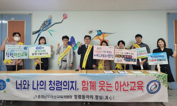 캠페인에 참여한 ‘청심’ 회원들은 “아산교육지원청과 학교의 청렴실천 의지를 교직원과 학생들이 함께 공유하는 뜻깊은 행사였다”고 말했다.