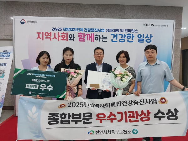 보건복지부는 전국 261개 보건소를 대상으로 지역사회 통합건강증진사업 운영 성과와 우수사례 등에 대한 평가를 실시하였고, 천안 서북구보건소는 시민의 요구를 반영한 생애주기별‧생활터별 맞춤형 통합건강증진 프로그램 개발성과를 높이 인정받아 보건복지부 장관 기관 표창과 함께 500만원의 포상금을 받게 됐다.