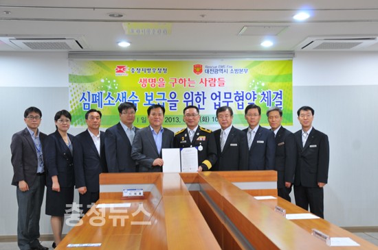 충청지방우정청(청장 이재홍)은 대전광역시소방본부(본부장 김성연)와 함께 18일 대전광역시소방본부 작전통제실에서 집배원의 심정지 환자 목격 시 초기 심폐소생술로 환자의 생명을 구하기 위한 업무 협약식을 체결했다.