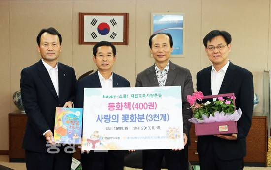 대전광역시교육청(교육감 김신호)은 19일 오전 대전시교육청 접견실(6층)에서 대전농협(본부장 한용석)으로부터 ‘HAPPY-스쿨’ 조성을 위한 꽃화분 3,000개, 동화책 400권을 기탁 받았다.