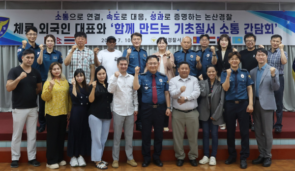 [충청뉴스 논산 = 조홍기 기자] 논산경찰서(서장 유동하)는 10일 11시 경 논산지역에 체류하고 있는 네팔, 태국, 몽골, 베트남 등 8개국 외국인 대표자들과 기초질서 등 법규 준수를 위한 ‘경청·소통 간담회’를 개최하였다.
