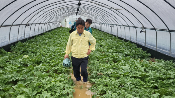 특히, 16일 밤에서 17일 새벽 사이 200mm가 넘는 집중호우가 내려 수박, 멜론 등 시설하우스가 많은 피해를 입었다.