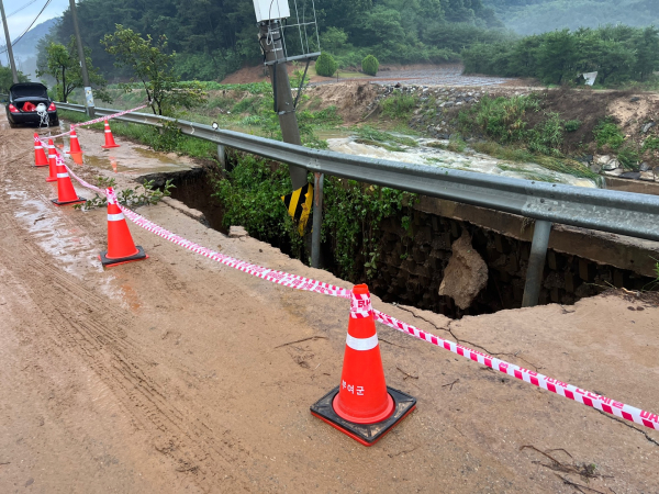 17일까지 신고된 시설 피해로는 ▲ 도로 사면붕괴, 도로 유실 등 도로 시설 피해 7개소 ▲ 배수로 유실, 마을안길 파손 등 소규모 공공시설 9개소, ▲ 지방하천 및 소하천 제방 유실 10개소 ▲ 문화유산 1개소 ▲ 산사태 등 산림 피해 ▲ 축사 피해 1개소 등 총 31건이다.