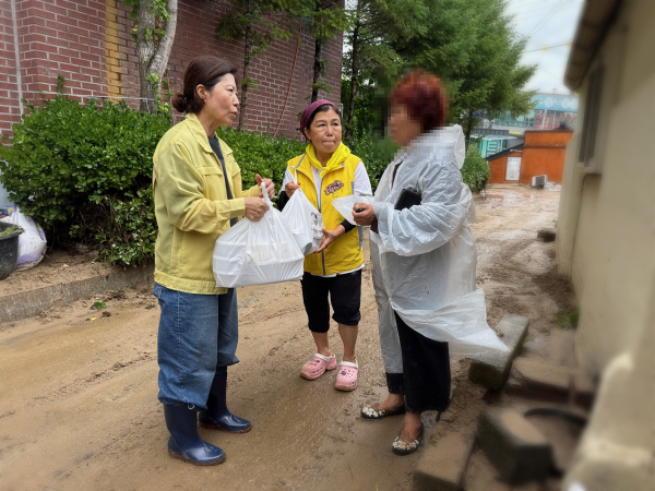 클린도시과는 지난 집중호우로 인해 진흙과 토사로 뒤덮인 도고면 기곡리 도로의 빠른 피해 복구를 위해 지난 18일부터 살수차와 노면 청소차를 동원해 신속한 청소 작업을 실시했고, 영인면행복키움추진단(공동대표 김은경·김정자)은 갑작스러운 호우로 침수 피해를 입은 이재민 가정을 우선적으로 찾아 삼계탕과 구호키트를 전달하고 위로를 전했다.