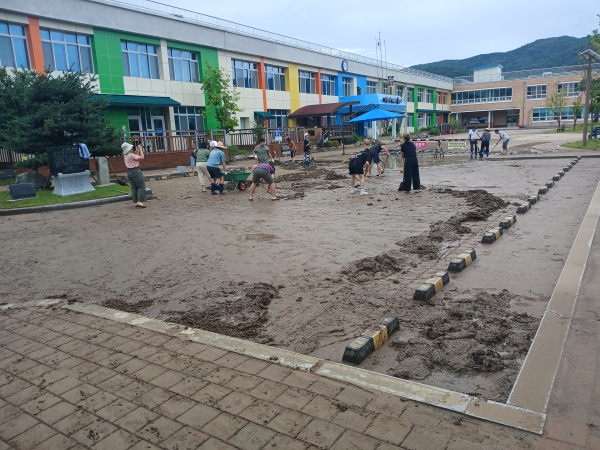 송남초등학교(교장 강진필)는 지난 17일 새벽 집중호우로 인해 운동장과 주차장 등이 많은 토사와 오물이 유입되는 침수 피해가 발생함에 따라 학부모와 교직원들은 이른 아침부터 갑작스러운 피해에 장화나 삽 등 장비가 부족함에도 흙탕물을 퍼내고, 운동장 곳곳에 쌓인 토사를 쓰레받기로 걷어내며 학생들의 안전한 학습 환경을 마련하는데 전념했다.