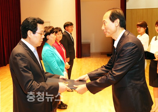 대전시교육청(교육감 김신호)은 28일 오전 시교육청 강당에서 퇴직공무원 가족과 교육관계자들이 참석한 가운데 2013년 상반기 지방공무원에 대한 훈장 전수 및 퇴임 행사를 가졌다.