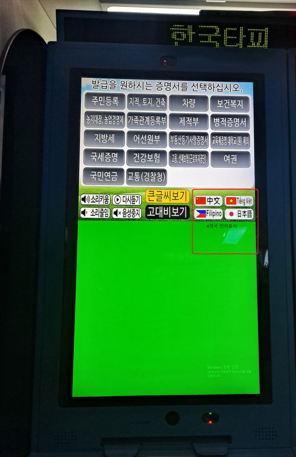 이번 서비스는 외국인 주민이 많이 거주하는 ▲둔포면 ▲신창면 ▲탕정면 ▲음봉면 ▲배방읍 행정복지센터와 ▲아산시청 발급기에 적용됐으며, 중국어·일본어·베트남어·필리핀어를 추가로 지원한다.