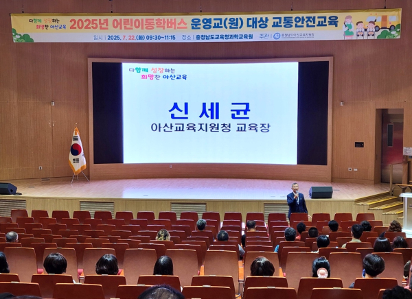 [충청뉴스 유규상 기자] 아산교육지원청(교육장 신세균)은 22일 오전 충청남도교육청과학교육원 대강당에서 2025년 어린이통학버스를 운영하는 유치원 및 학교 관계자들을 대상으로 교통안전교육을 진행했다.