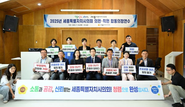 [충청뉴스 최형순 기자] 세종특별자치시의회(의장 임채성)는 24일 ~ 25일까지 이틀간 충남 공주시 일원에서 '2025년 의원·직원 합동 의정연수'를 실시 한다.