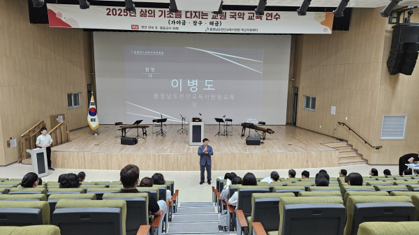 [충청뉴스 유규상 기자] 충청남도천안교육지원청(교육장 이병도)은 28일(월)부터 8월 1일까지 5일간 천안시청소년복합커뮤니티센터에서 관내 초·중·고·특수 교원을 대상으로 ‘2025 교원 국악기 사용자 역량 강화 연수’를 운영한다.