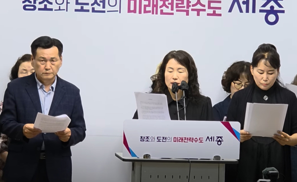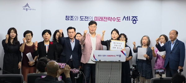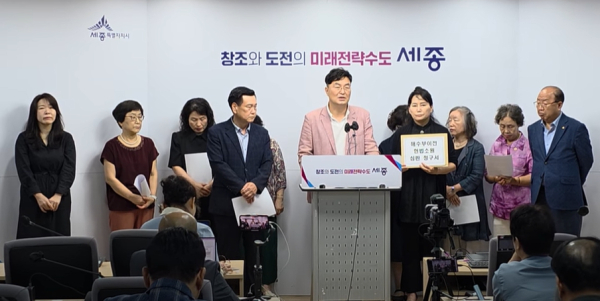 [충청뉴스 최형순 기자] 세종 해수부 시민지킴이단(단장 박윤경)은 29일, 시청 브리핑룸에서 정부의 해양수산부(이하 해수부) 부산 이전에 강력히 반대하며, 국가 균형 발전의 근간을 흔들고, 세종 시민의 신뢰를 배반하는 행위라고 규탄하는 기자회견을 개최했다.