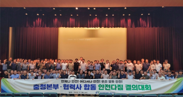이날 결의대회에는 충청본부 및 협력사 관계자 약 250명이 참석했다. 참석자 전원은 안전 결의문을 함께 낭독하고 ‘무재해’ 구호를 복창하며 사고 제로(Zero) 달성을 향한 굳은 의지를 재확인했다.