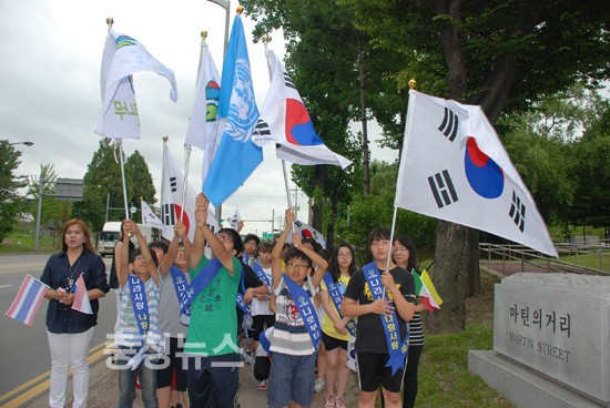 국기게양식 행사에 이어 행사에 참여한 129여명의 학생과 다문화가구 대표가 대형UN기와 태극기, 나라사랑 큰나무기, 성조기 및 21개 UN참전국 손태극기 등을 들고 천안박물관, 삼거리공원 등을 경유, 나라사랑 다짐구호 등을 외치며 나라사랑 호국투어(2km)를 실시했다.