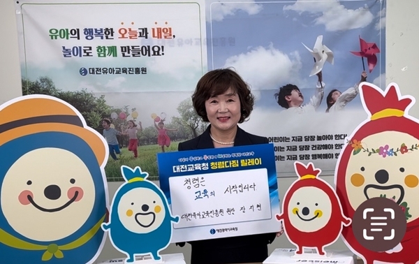 [충청뉴스 이성현 기자] 대전유아교육진흥원이 대전시교육청 ‘고위직과 함께 하는 청렴다짐 릴레이’ 캠페인에 동참했다고 1일 밝혔다.