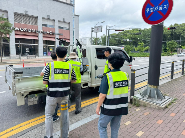 천안시에서 무단 방치된 개인형 이동장치(PM)을 견인하고 있다.
