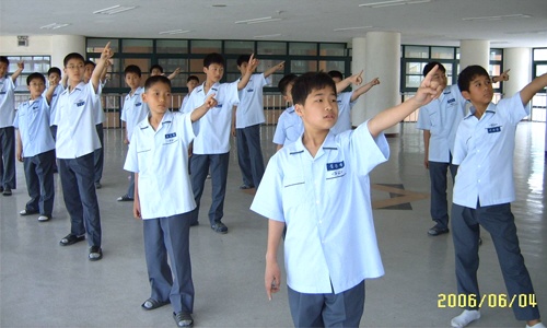 아침 8시 30분이 되면 “오, 필승! 코리아!~”가 스피커를 통해 울려 퍼지고 각 교실에서는 담임교사의 지휘 아래 꼭짓점 댄스 대열로 맞춰서 춘다.