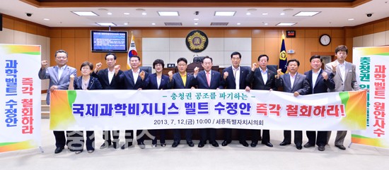 이에 세종시의회는 ▲ 과학벨트 거점지구의 기초과학연구원은 지역간 시너지 효과를 극대화시킬 수 있는 둔곡·신동 지구가 최적지임을 다시 한번 천명하고, 조속한 기능지구의 활성화를 촉구 ▲ 과학벨트 사업이 원안대로 이행돼 기초과학역량 증진은 물론, 세종시의 자족성이 확충되는 세종시민의 염원이 달성될 때까지 투쟁할 것을 강력히 천명 ▲ 박근혜 정부는 '세종시 설치법' 개정, 신설부처 이전 등을 통해 '원안 + ɑ'를 실천할 것을 강력 주장했다.