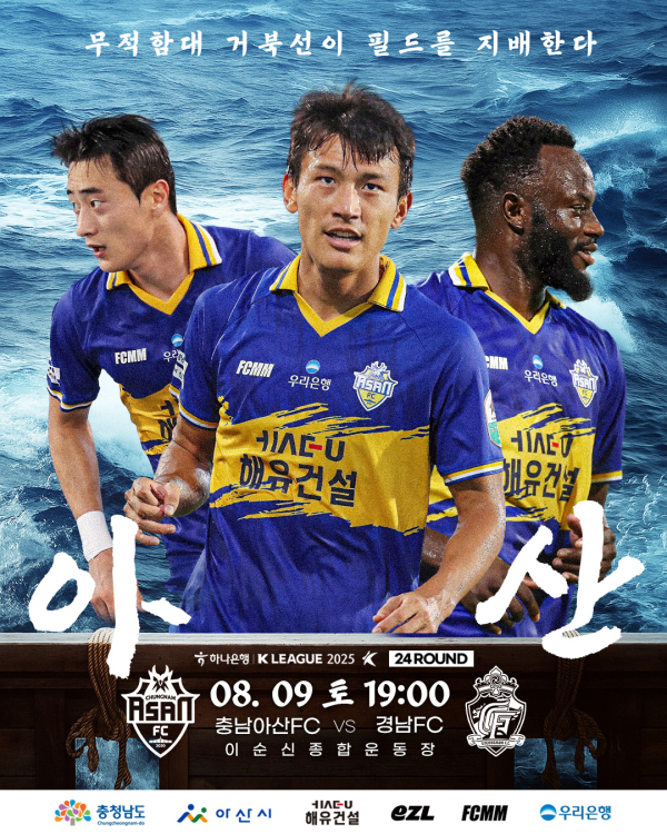 충남아산프로축구단(구단주 오세현, 대표이사 이준일, 이하 충남아산FC)은 오는 9일 오후 7시 이순신종합운동장에서 경남FC(이하 경남)를 상대로 하나은행 K리그2 2025 24라운드 홈경기에 나선다.