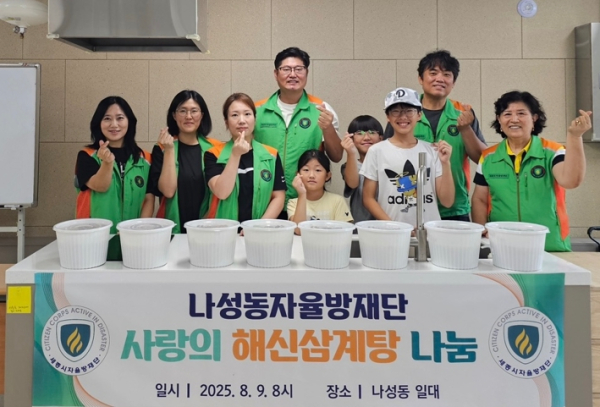 ​나성동 지역자율방재단은 이번 삼계탕 나눔 외에도 재난 예방 및 복구 활동, 취약계층 돌봄 등 다양한 봉사활동을 펼치며 지역 사회 안전과 주민 화합에 앞장서고 있다.