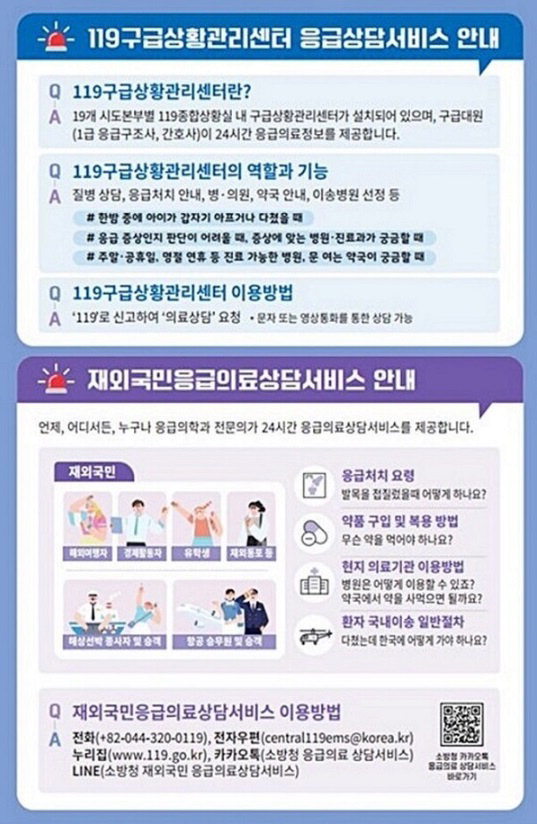 천안서북소방서, 119 구급상황관리센터 및 재외국민 응급의료상담서비스 안내