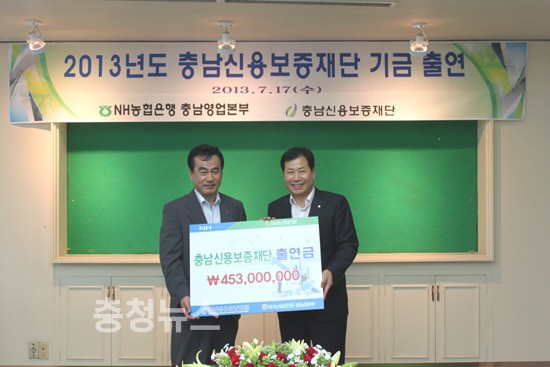 NH농협은행 충남본부(본부장 윤동기)는 17일 충남신용보증재단(아산시 염치읍 소재)을 방문해 정철수 이사장에게 출연금 4억 5300만원을 전달했다.