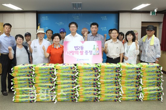 하이트진로(특판대전지점장 방상복)는 18일 법2동 주민센터회의실에서 조영옥 법 2동동장과 법2 동 자생단체장, 주민들이 참석한 가운데 ‘사랑의 쌀 전달식’을 가졌다.