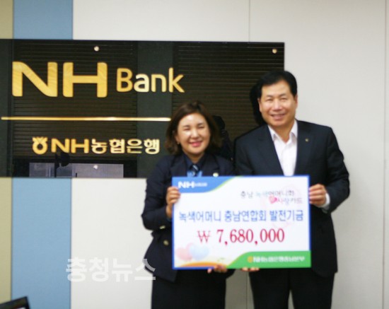 NH농협은행 충남본부(본부장 윤동기)는 18일 농협은행 본부장실에서 충남녹색어머니회 사랑카드로 조성한 발전기금 7백만원을 녹색어머니 충남연합회(연합회장 백은영)에 전달했다.