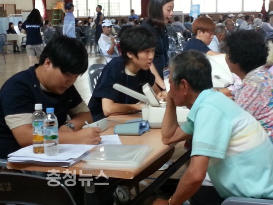 농협충남지역본부(본부장 김병문)은 지난 20일 보령시 명천동 소재 한내초등학교 체육관에서 충남대학교병원 의료진과 국민건강보험, 대학생 의료봉사단 등 80여명을 초빙해 보령 대천농협 관내 고령농업인 및 독거노인,등 의료서비스 취약계층 500여명을 대상으로 지난 6월 홍성 광천지역에 이어 두 번째 무료진료 의료봉사 활동을 실시했다.