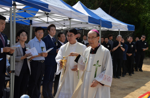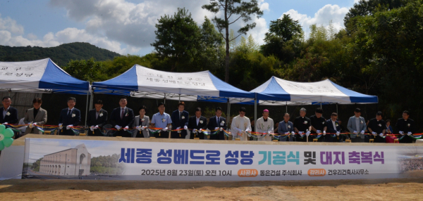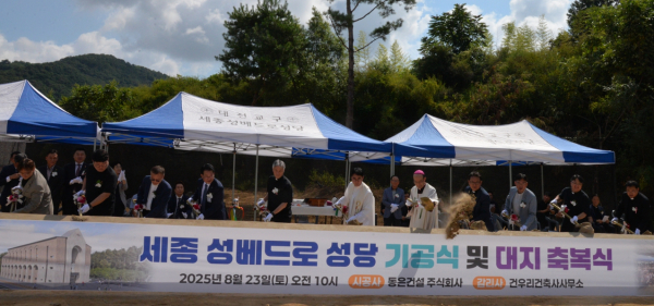 [충청뉴스 최형순 기자] 천주교 대전교구는 23일 해밀동 6-4생활권 신축 부지에서 세종 성베드로성당 기공식 및 대지축복식을 열고 본격적인 성당 신축의 시작을 알렸다.