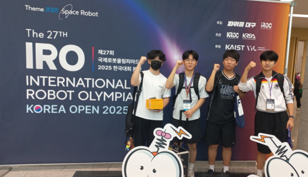 국제로봇올림피아드(IROC)는 국제 청소년 로봇대회로, 약 30여 개국이 참여하며 매년 수많은 학생이 실력을 겨루는 글로벌 플랫폼으로 AI 휴봇 부문에서 이순신고는 금상 1팀(박민준, 황종혁), 테크니컬상 2팀(강지민, 홍준성/이동권, 정혜인)이 수상함으로써 의미 있는 결과를 이뤄냈다.
