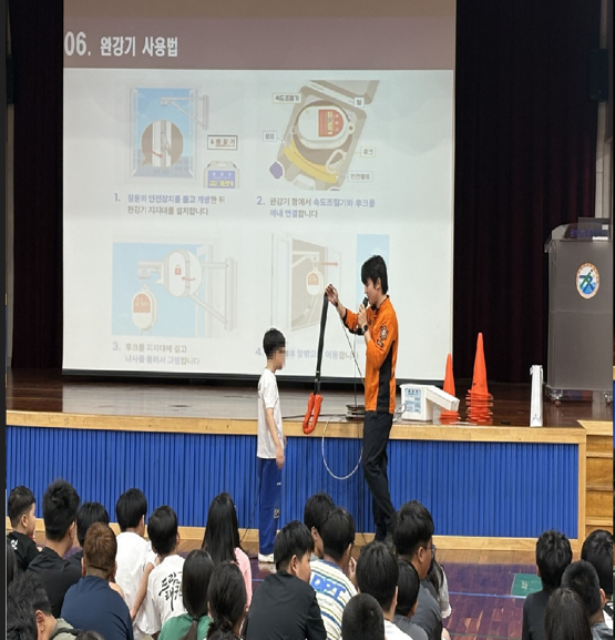 교육에는 학생 230명이 참여해 생활 속 화재예방과 화재 시 대처 요령과 연기 체험 등 학생들이 직접 체험하며 학습할 수 있도록 구성됐다. 특히 완강기 사용법 교육을 통해 고층 건물에서의 안전한 탈출 방법을 익히는 시간을 마련해 학생들의 안전의식을 높였다.
