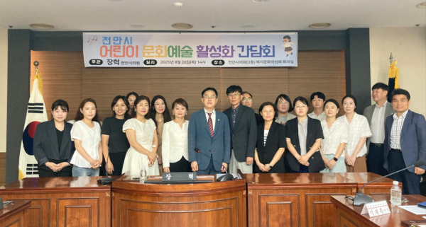 [충청뉴스 유규상 기자] 천안시의회 장혁의원은 지난 28일 복지문화위원회 회의실에서 「천안시 어린이 문화예술 활성화 간담회」를 주관하며, 어린이와 청소년의 문화예술 참여 확대를 위한 과제를 논의했다.