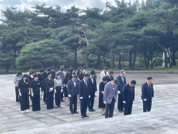 차덕환 천안교육장과 간부들이 독립기념관을 방문해 참배하고 있다