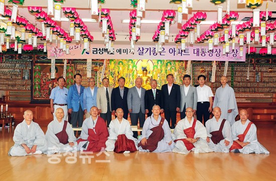 (주)금성백조주택 도안신도시 13단지 예미지 대통령상 수상 축하를 위한 축하법회가 4일 오전 대한불교조계종 청우사(서구 괴정동, 김덕수 주지)에서 열렸다. ▲ (주)금성백조주택 도안신도시 13단지 예미지 축하법회 이날 행사에는 약 150여명의 신도가 참석해 축하의 뜻을 함께 했으며 (주)금성백조주택 정성욱 회장은 청우사 신도연합회장을 맡고 있다. 저작권자 © 충청뉴스 무단전재 및 재배포 금지 최온유 기자 다른기사 보기 기사가 마음에 드셨나요? 충청뉴스 좋은 기사 후원하기 1,000원 3,000원 5,000원 10,000원 30,000원 50,000원 직접입력 비회원 약관동의하기 ※ 소중한 후원금은 더 좋은 기사를 만드는데 쓰겠습니다.