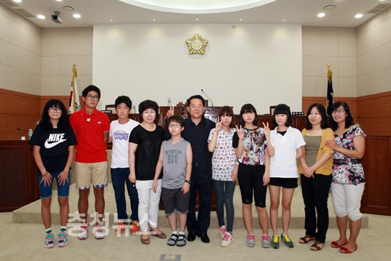 여름방학을 맞아 진잠 초.중학교 학생과 학부모가 7일 오전 유성구의회를 방문해 의회시설을 견학하고 무의의사진행 프로그램을 체험하는 시간을 가졌다.