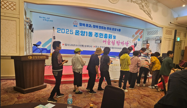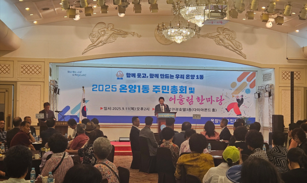 [충청뉴스 유규상 기자] 아산시 온양1동 주민자치회(회장 김찬호)는 11일 온양관광호텔 다이아몬드홀에서 열린 ‘2025년 주민총회 및 주민화합 어울림 마당’을 성공적으로 마쳤다.
