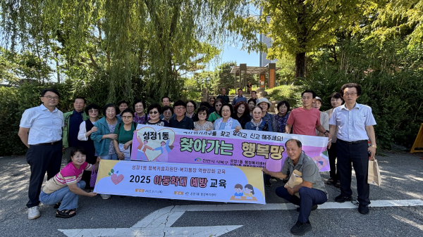 박성필 성정1동장은 “아동학대 예방은 행정기관만의 역할이 아니라 주민 모두가 나서야 할 과제”라며 “교육을 통해 신고 의무에 대한 인식을 높이고, 우리 동네 아이들을 지킬 수 있는 든든한 안전망이 마련되기를 바란다”고 말했다.