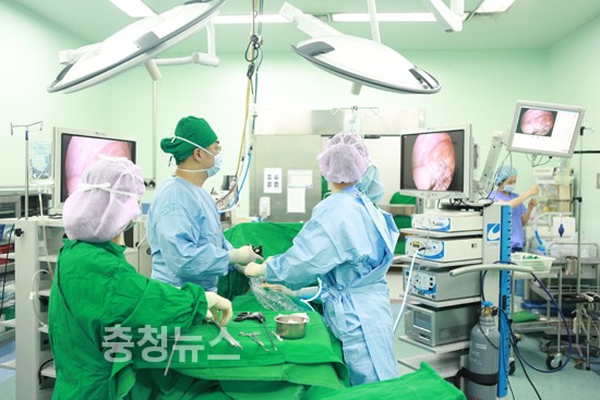 충남대학병원(원장 송시헌) 흉부외과 강민웅 교수는 최근 흉부에 작은 구멍 하나만으로 좌폐엽 절제술을 시행해 성공했다.