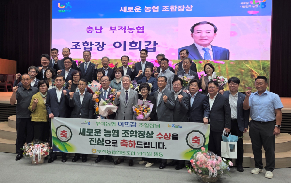 [충청뉴스 논산 = 조홍기 기자] 논산 부적농협 이희갑 조합장이 농협중앙회 본관에서 열린 9월 정례회의에서 ‘새로운 농협 조합장상’을 수상했다. 이번 수상은 2019년 취임 이후 보여준 이 조합장의 탁월한 리더십과 혁신적인 경영 능력을 대외적으로 인정받은 결과다.