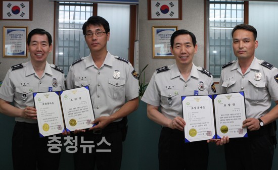 정용선 대전지방경찰청장은 21일 서부서 도마지구대를 방문, 112순찰 중 삶을 비관하여 가출한 자살기도자를 3시간에 걸쳐 설득하여 가족의 품으로 인계하여 자랑스러운 대전경찰을 빛낸 도마지구대 경위 김남균, 경사 이종현에게 포상·격려했다.