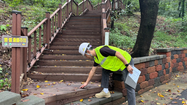 천안도시공사는 태조산공원에서 안전점검을 실시하고 있다.