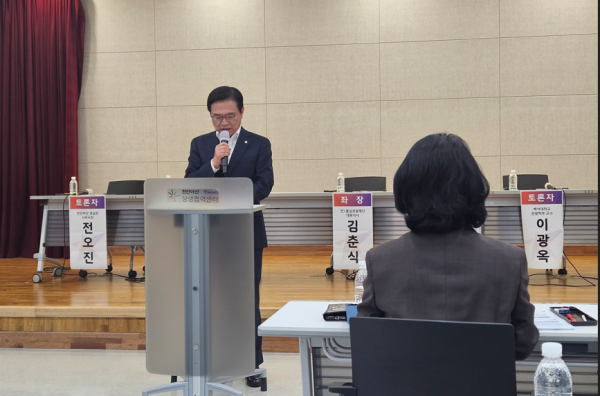 김춘식 전 충남관광재단 대표이사가 좌장을 맡은 토론에는 이광옥 백석대학교 교수, 윤평호 대전일보 기자, 전오진 천안아산 경실련 사무국장이 토론자로 참여했다.