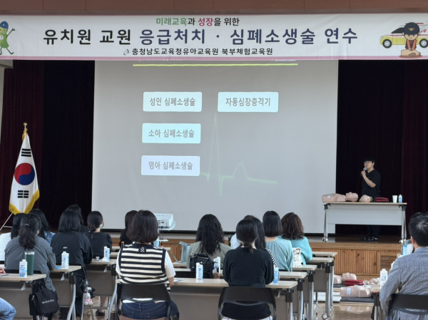[충청뉴스 유규상 기자] 충청남도교육청유아교육원 북부체험교육원(원장 양은주)은 22일 도내 유치원 교원 44명을 대상으로 「2025 하반기 응급처치 및 심폐소생술 연수」를 실시하였다.