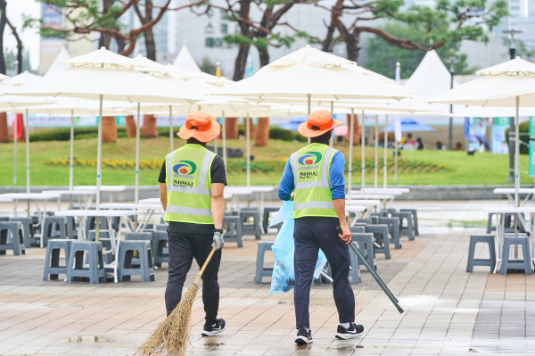 천안시 환경미화원도 방문객이 쾌적하게 축제를 즐길 수 있도록 행사장 주변에서 발생하는 쓰레기를 신속히 수거하였다.