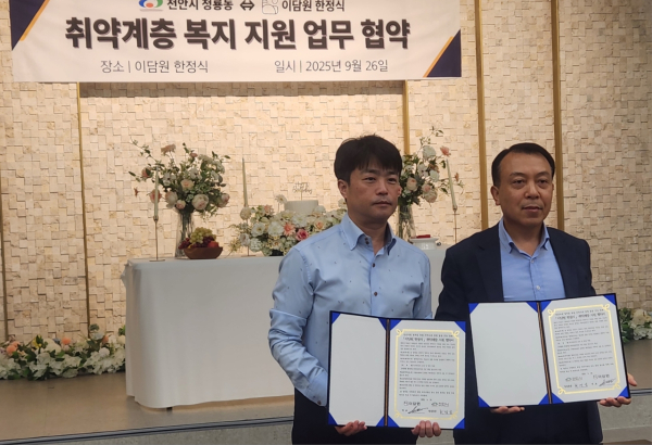 [충청뉴스 유규상 기자] 천안시 청룡동은 지난 26일 이담원 한정식과 취약계층 지원을 위한 업무협약을 맺었다.